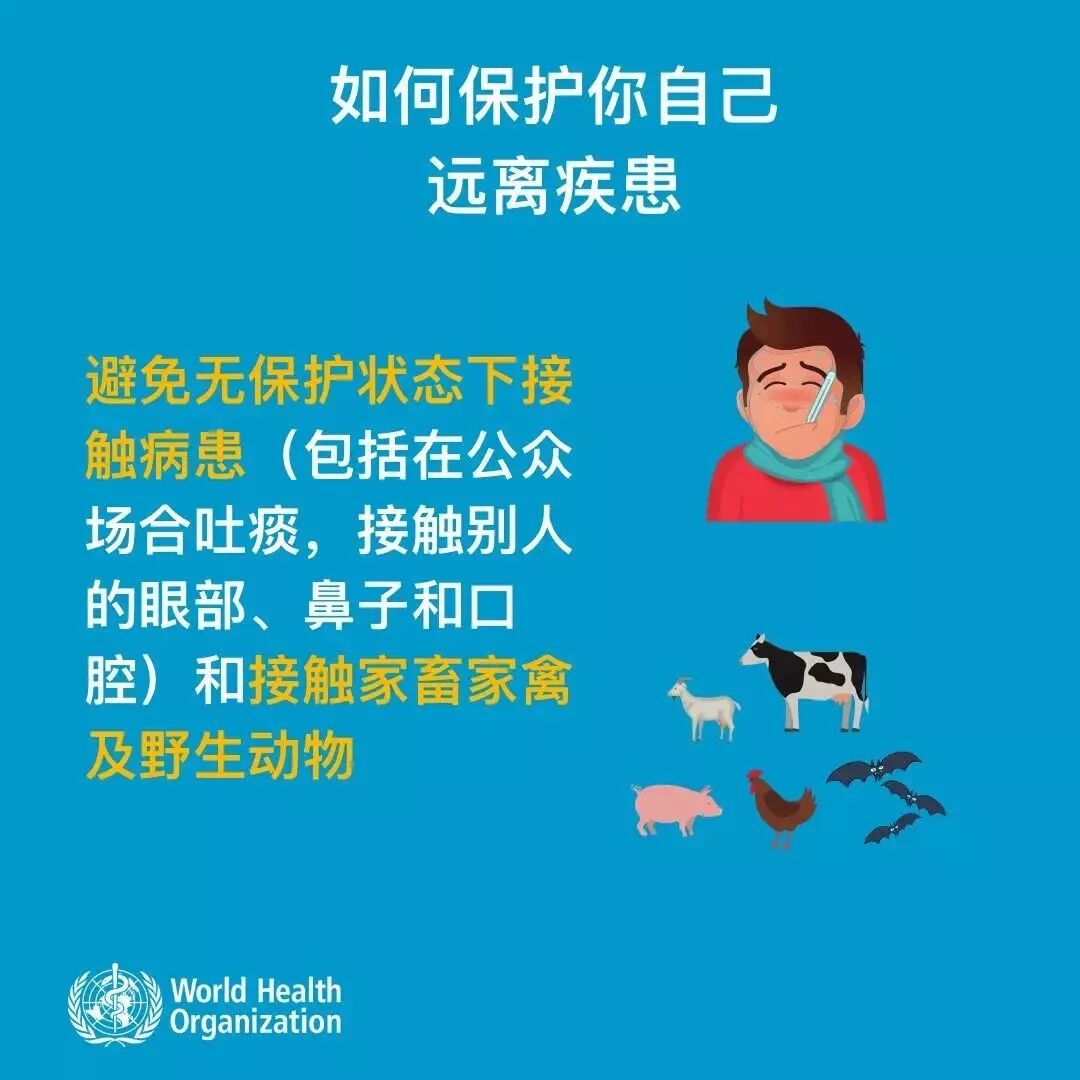 WHO(世界卫生组织)推荐【新型冠状病毒防护小贴士】: